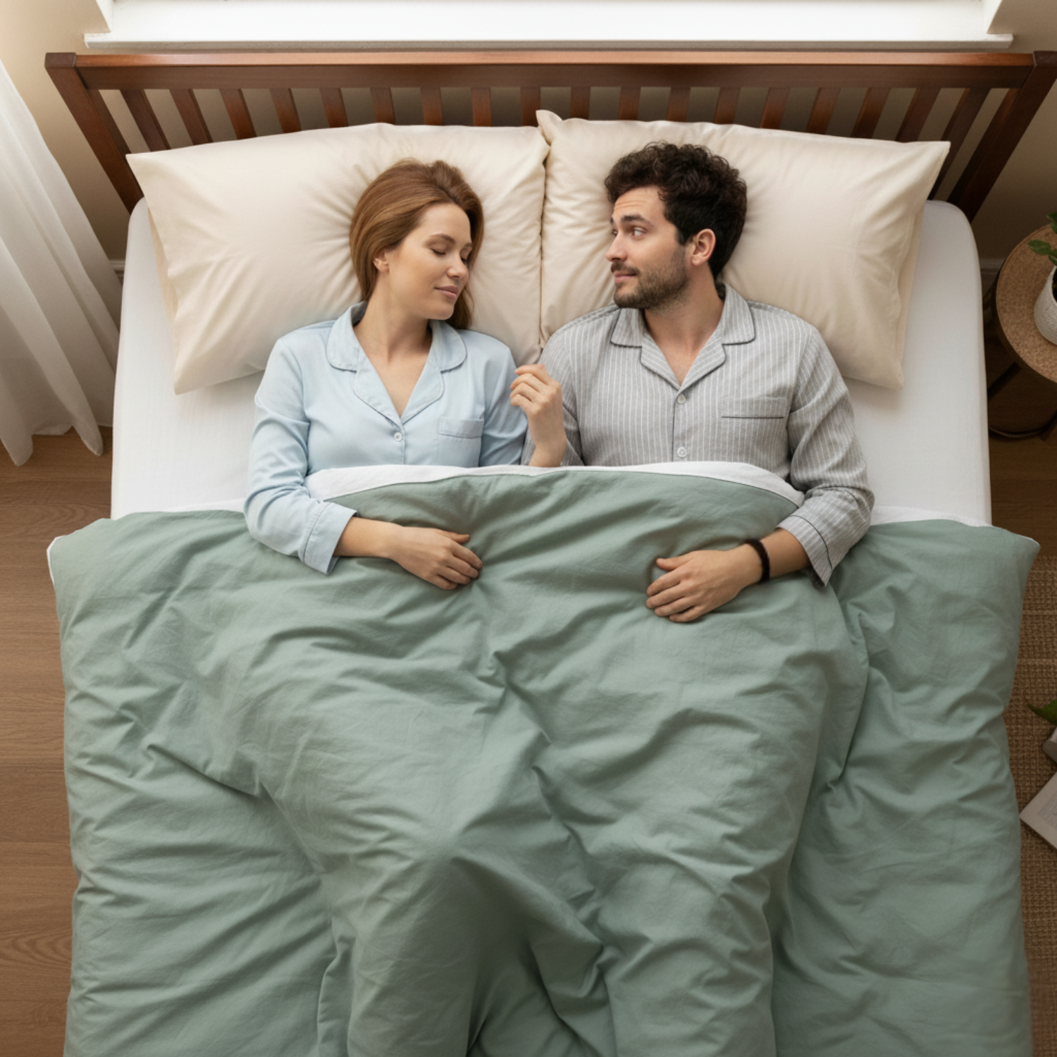 Un couple, deux problèmes opposés : Lui n'entendait jamais son alarme et arrivait en retard, elle se réveillait au moindre bruit et dormait mal. Nous avons créé EasyWake : un réveil vibrant silencieux qui vous réveille efficacement, sans déranger votre partenaire. Pour des matins sereins, ensemble.