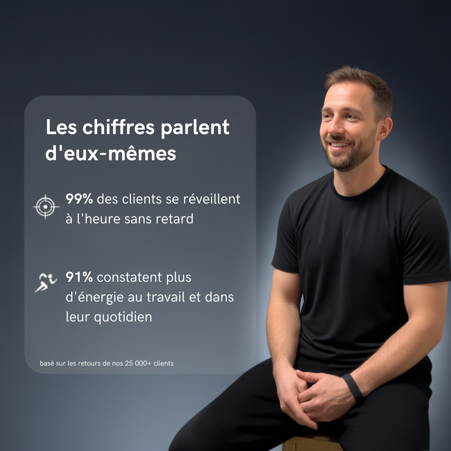 se sentent fatigués dès le réveil La cause ?Un réveil brutal qui choque votre corps au lieu de le réveiller naturellement. EasyWake utilise des vibrations progressives pour un réveil en douceur.