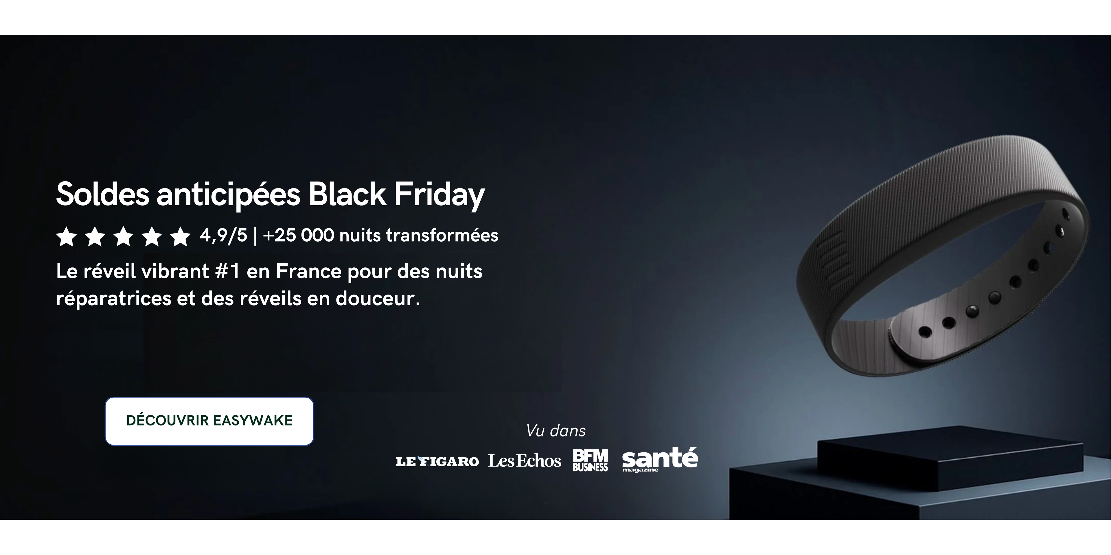 Le réveil EasyWake transforme vos réveils grâce à des vibrations douces et efficaces. Réveillez-vous à l'heure, en forme, sans bruit. Idéal pour les dormeurs profonds qui veulent des matins sereins, sans déranger leur partenaire.