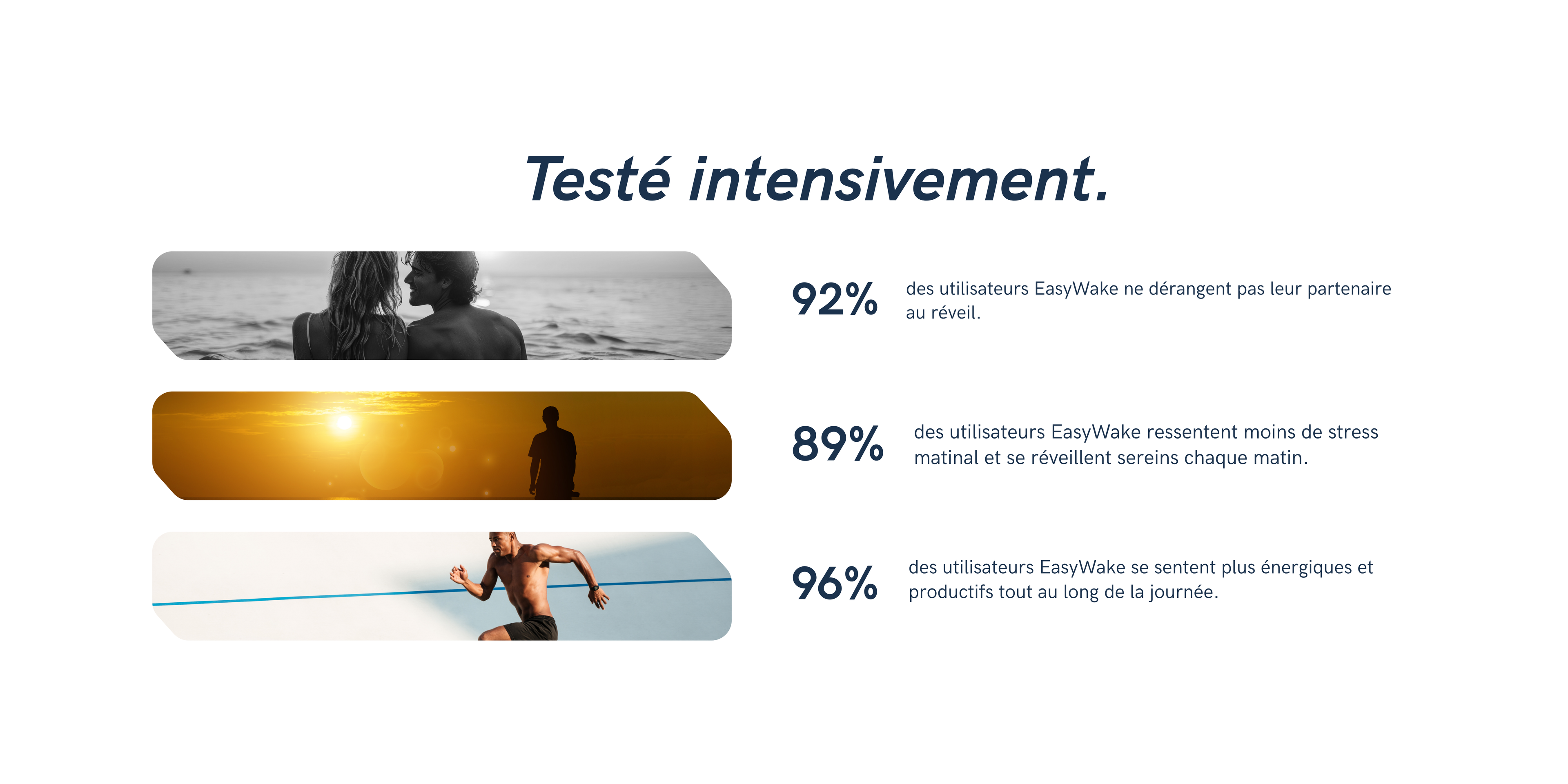 Depuis que j'utilise EasyWake, je me réveille plein d'énergie et je n'appuie plus jamais sur snooze. Cela me donne un état d'esprit positif et énergique pour commencer la journée. En tant que sportif qui s'entraîne deux fois par jour, mon entraînement matinal est crucial. Grâce à l'énergie avec laquelle je me réveille, je tire le meilleur de mes entraînements et j'atteins mes objectifs.