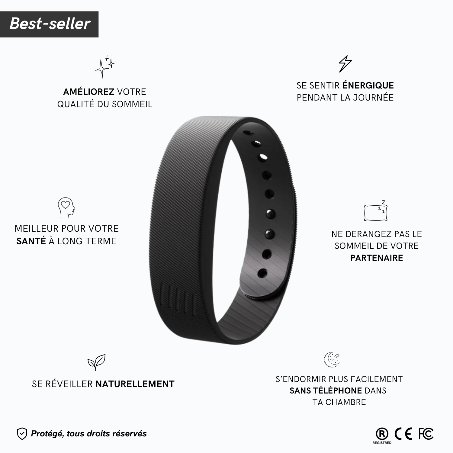 Les vibrations sont physiques et impossibles à ignorer. Contrairement au son, auquel votre cerveau s'adapte, notre bracelet délivre un stimulus physique direct, contribuant ainsi à déclencher le réveil naturel de votre corps.